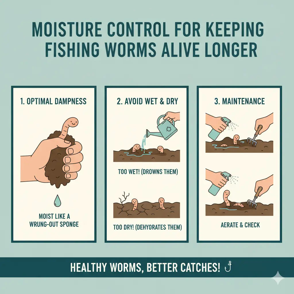 Udržováním správné kontroly vlhkosti můžete vytvořit prostředí, které udrží vaše rybářské červy zdravé, aktivní a připravené přilákat ryby.