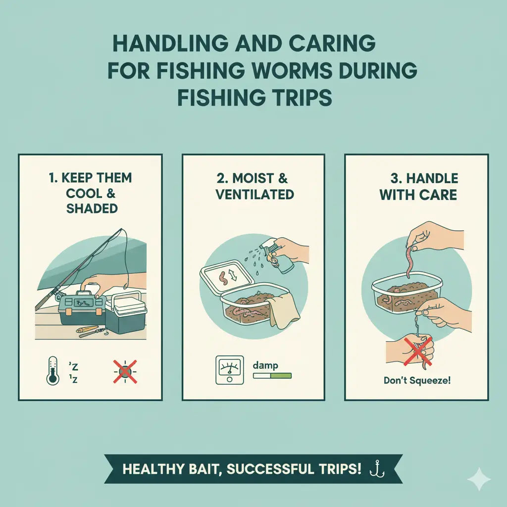 Manipulace a péče o rybářské červy během rybářských výletů