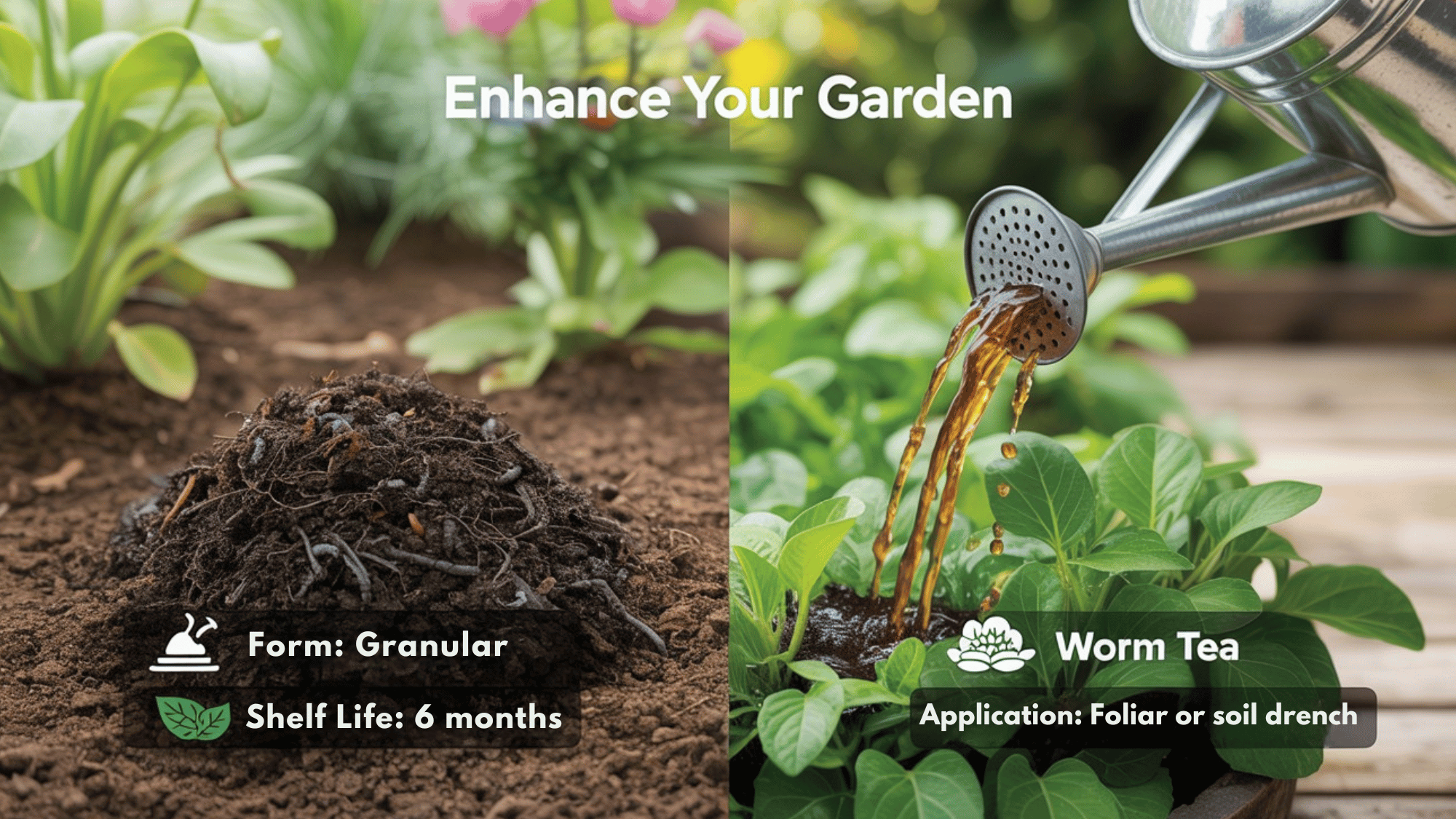Chociaż oba pochodzą z tego samego źródła, sposób, w jaki wchodzą w interakcję z ogrodem, jest inny.Poniżej znajduje się wizualne porównanie, które pomoże Ci zdecydować, kiedy sięgnąć po odlewy z robaków, a kiedy zaparzyć herbatę z robaków: