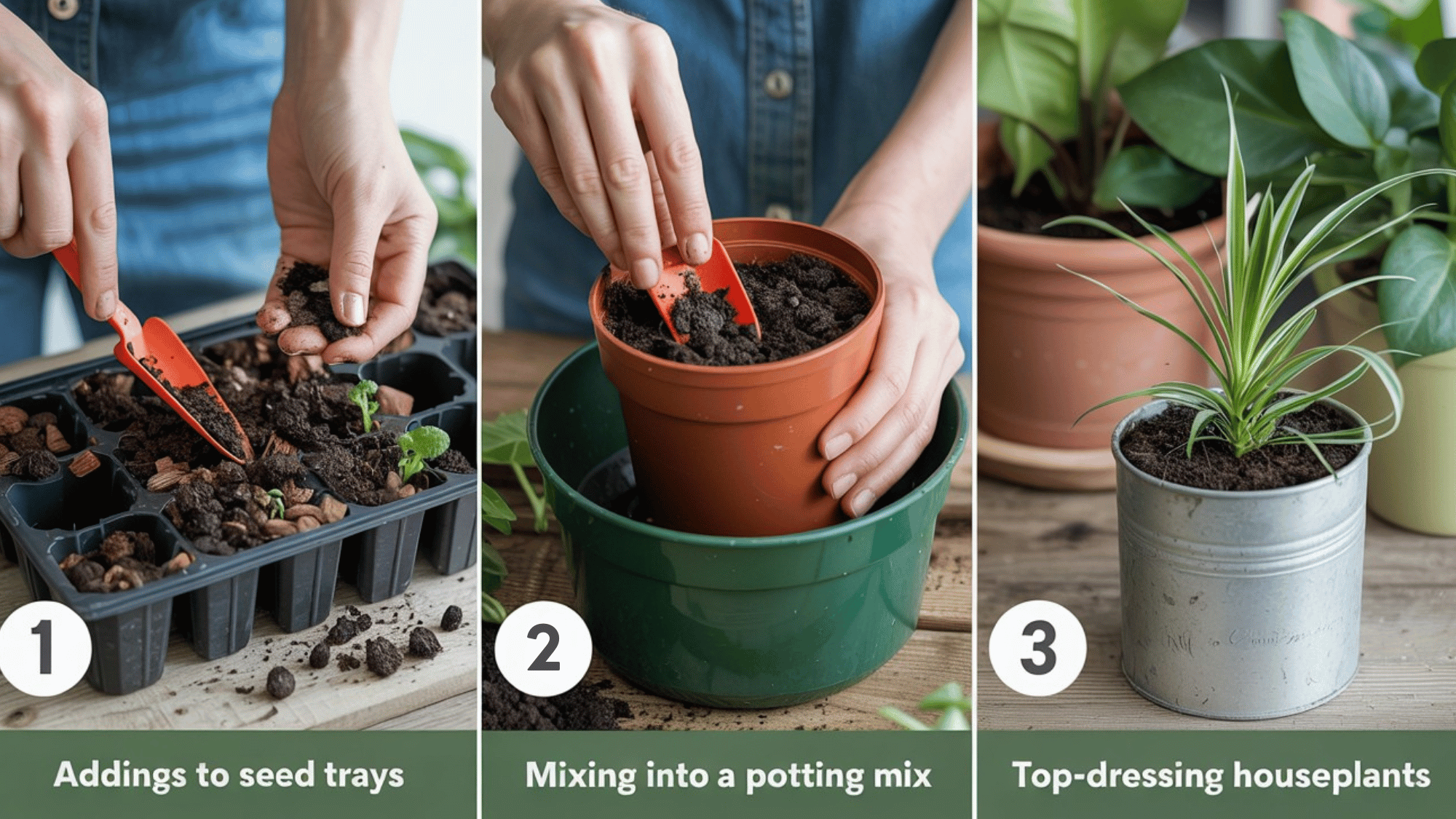 - Zaczynanie nasion: Wymieszaj z glebą, z której wysiewa się nasiona, aby zapewnić zdrowe kiełkowanie.