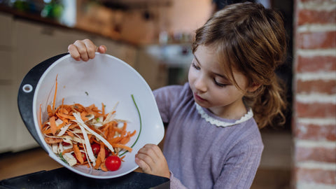 Cozinheiros caseiros com sobras de vegetais após cada refeição